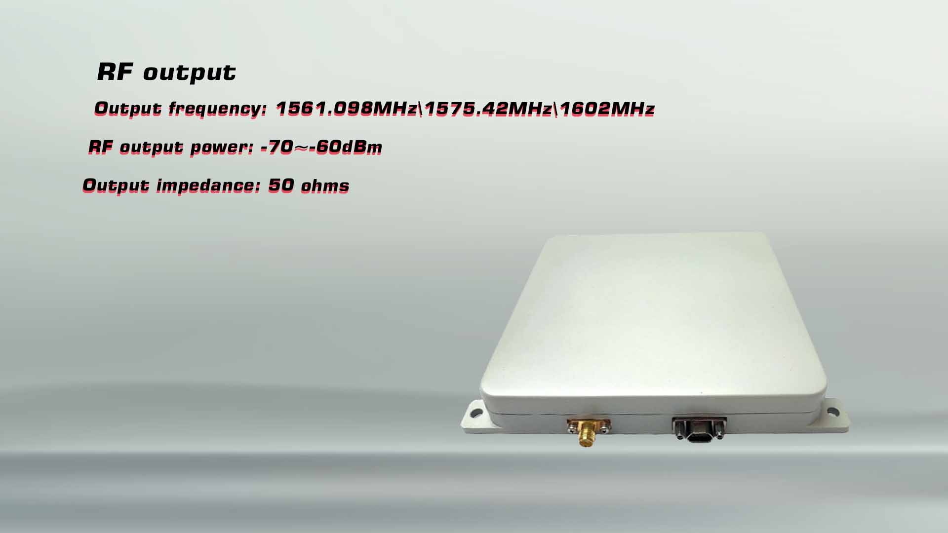 | Navigation Output | NMEA0183 protocol; serial/RF (SMA) port output |