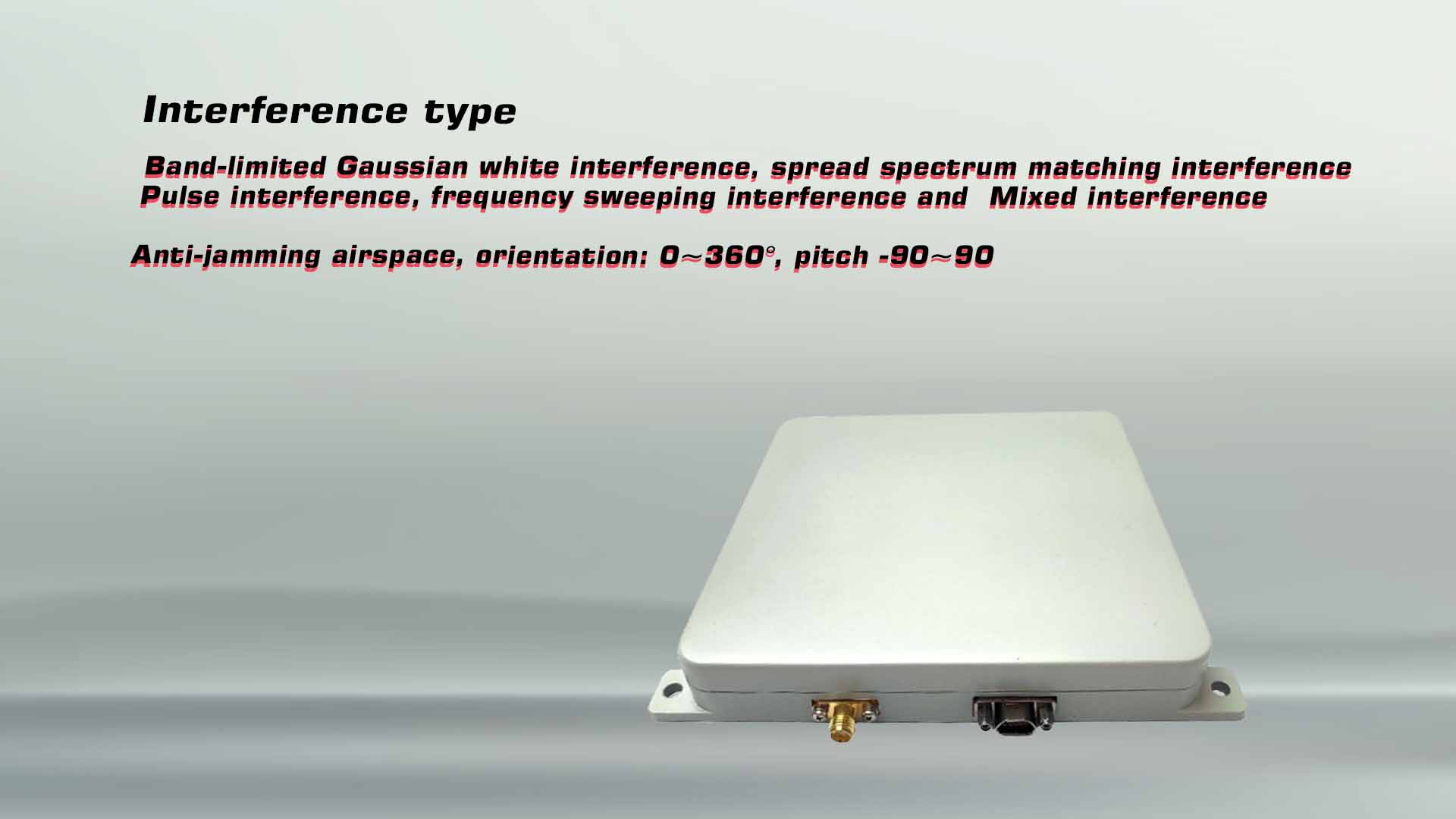 | Anti-interference Capability | Suppresses multiple interferences; ≥105dB (unidirectional), ≥95dB (three-direction); ≥10W anti-continuous wave |