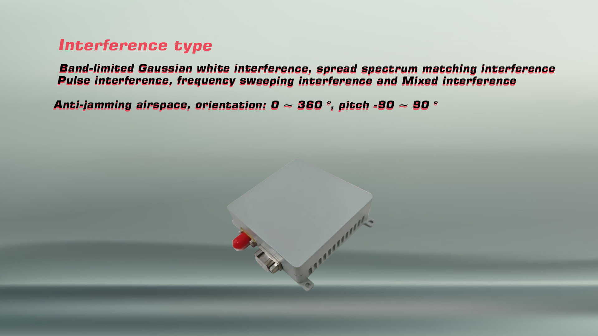Band-limited Gaussian white interference, spread spectrum matching interference, Pulse interference, frequency sweeping interference, Mixed interference |