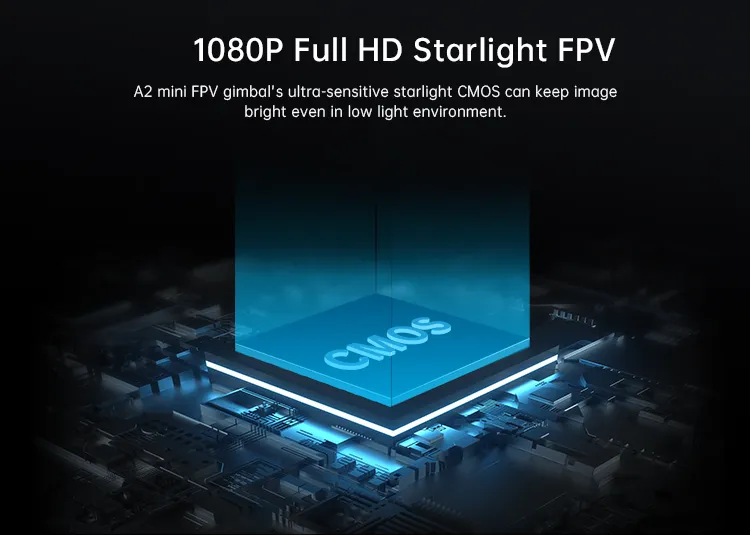 The A2 Mini features a 1080P starlight camera sensor with ultra-wide 160° field of view (FOV), providing excellent low-light visibility for FPV applications.