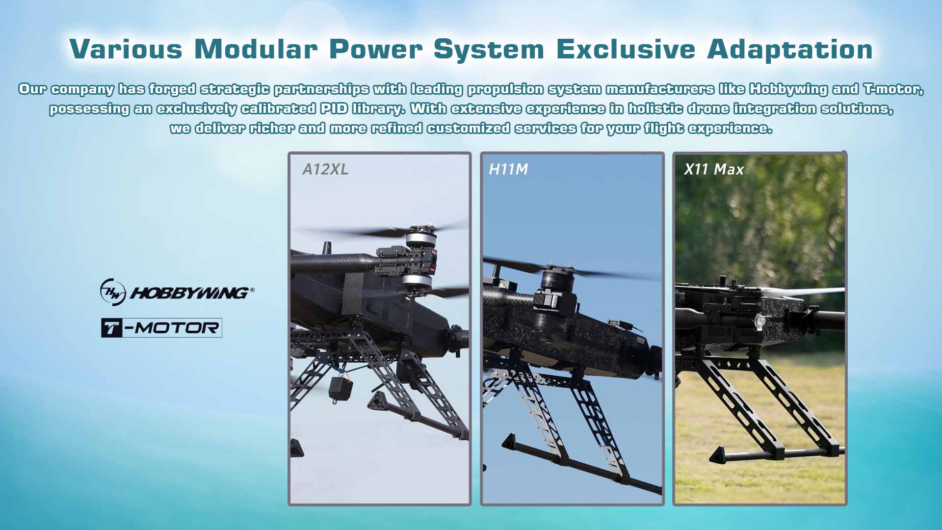 Yes. The design allows integration with both standard ESC and power distribution systems, supporting multiple battery arrangements for endurance optimization and mission-specific configurations.
