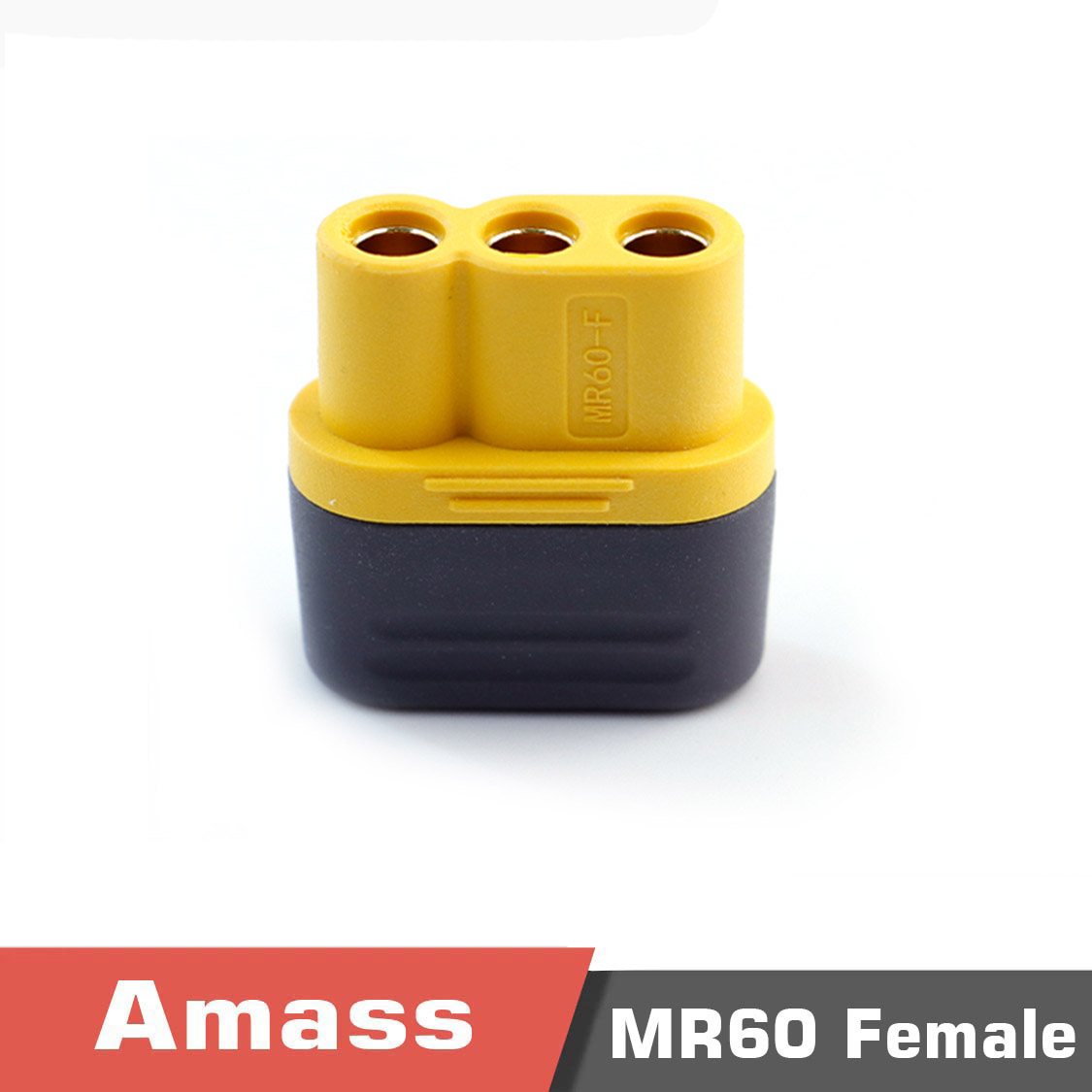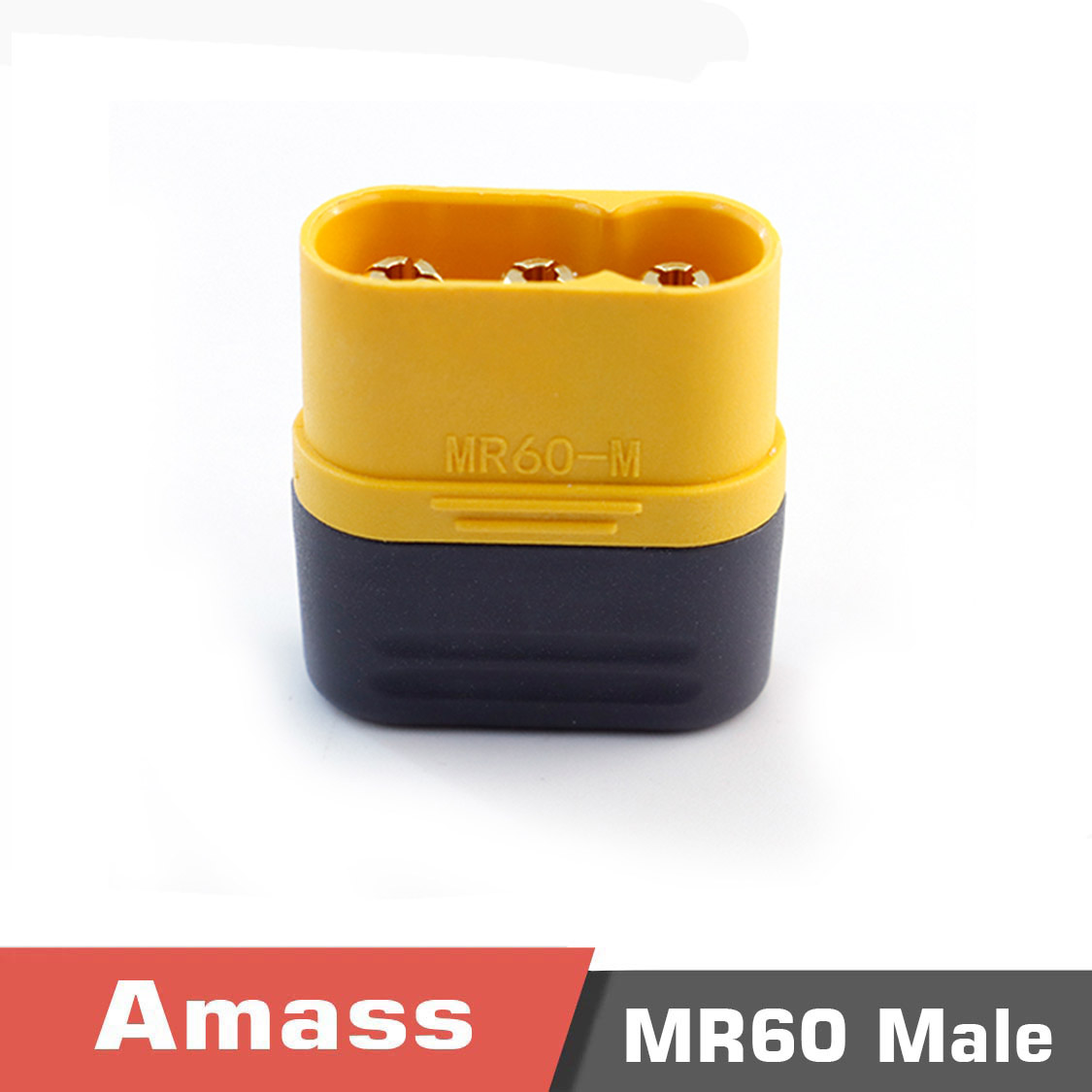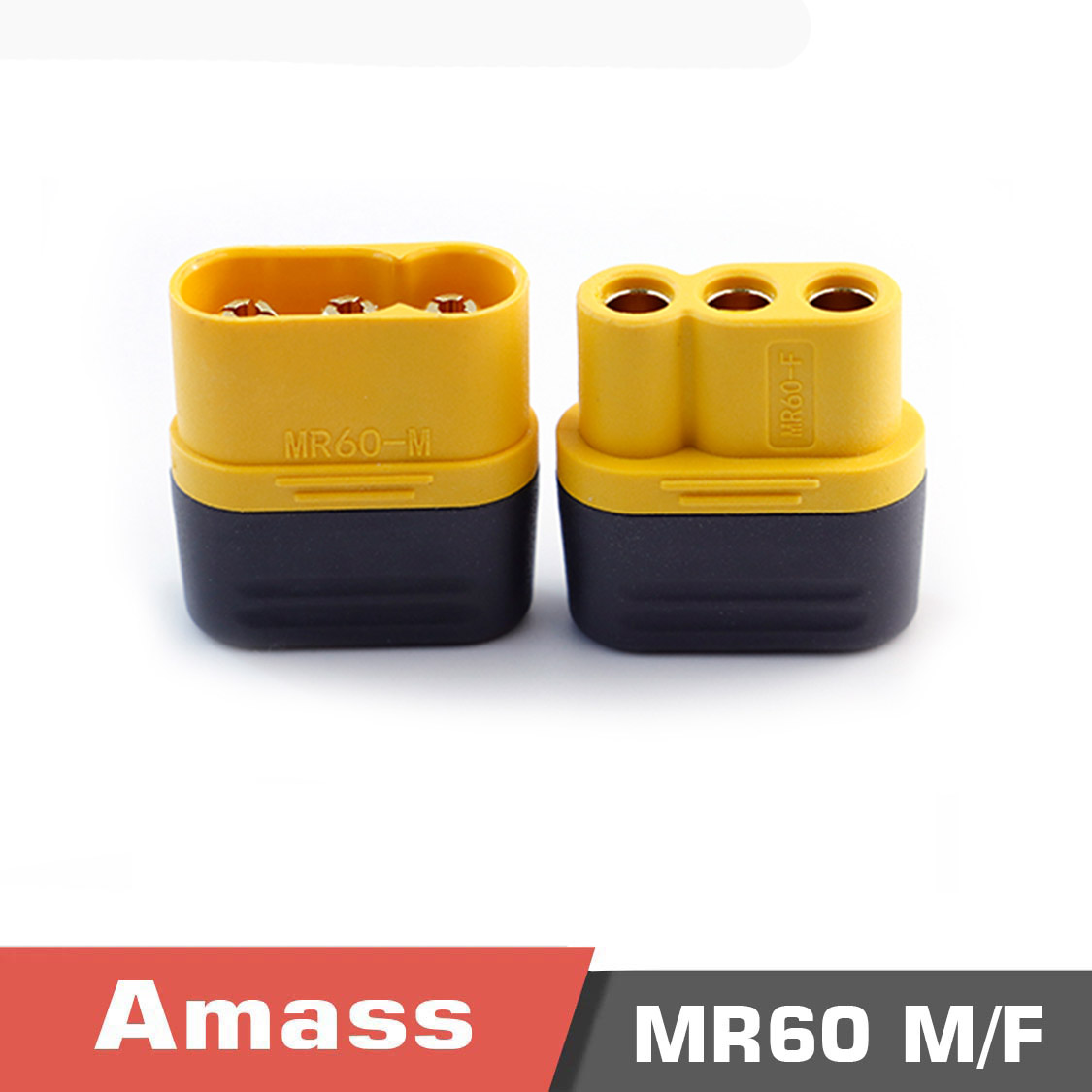 The Amass MR60 series products are a classic 180° outlet welding injection type 3PIN connector, designed for high-performance power connections. These connectors feature an optional rear cover and are arranged in a rectangular shape, making them a standard plug-in choice for power lithium-ion motors.