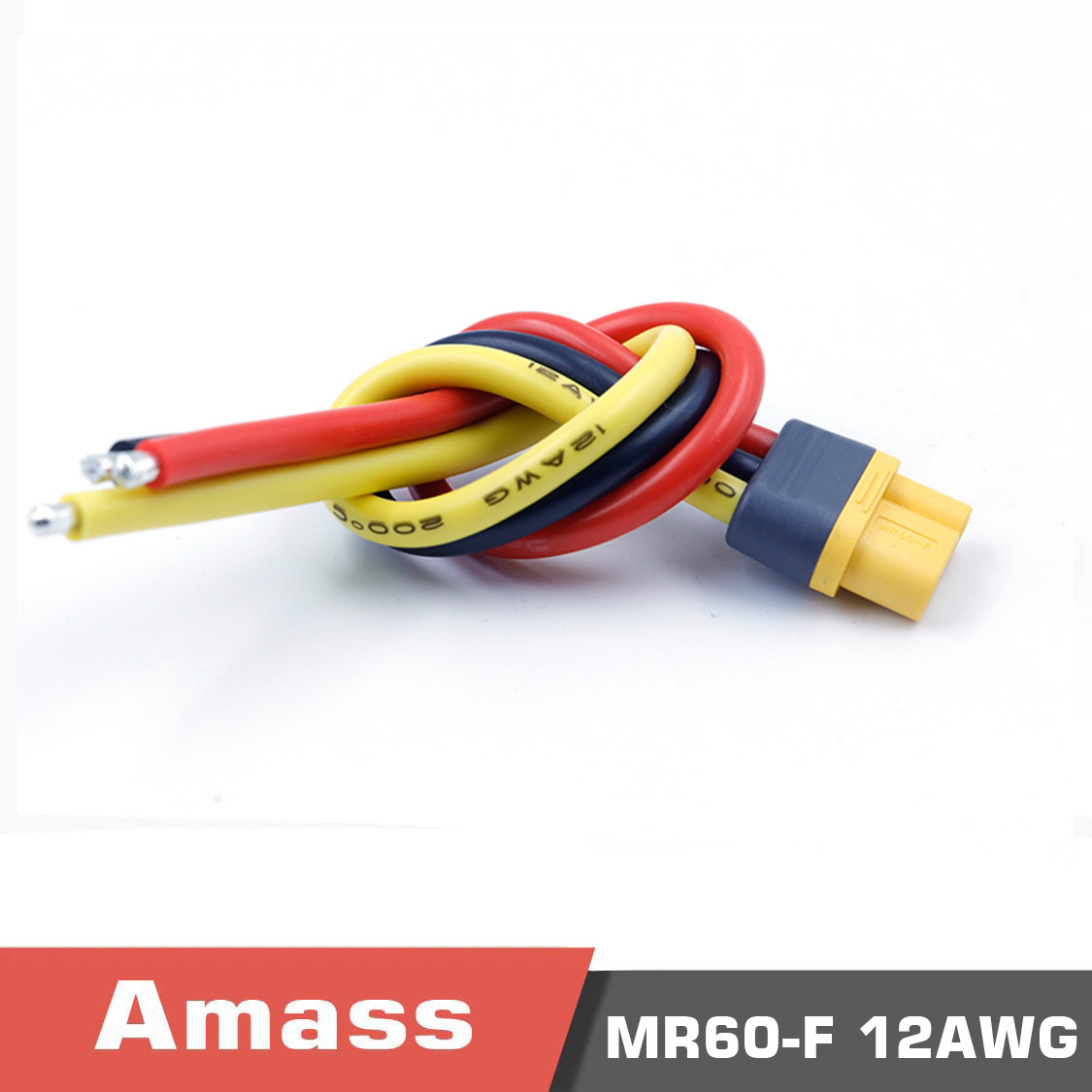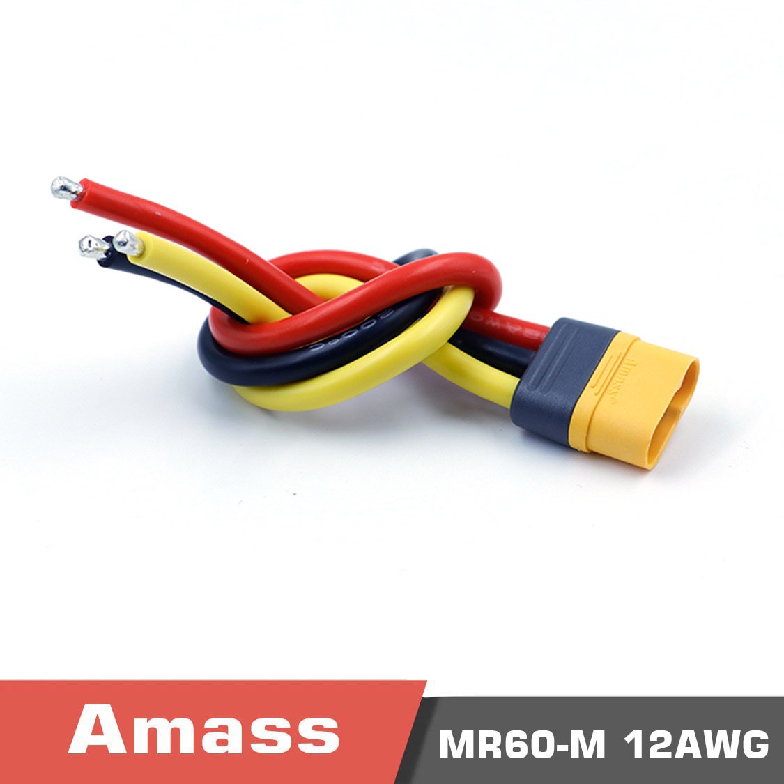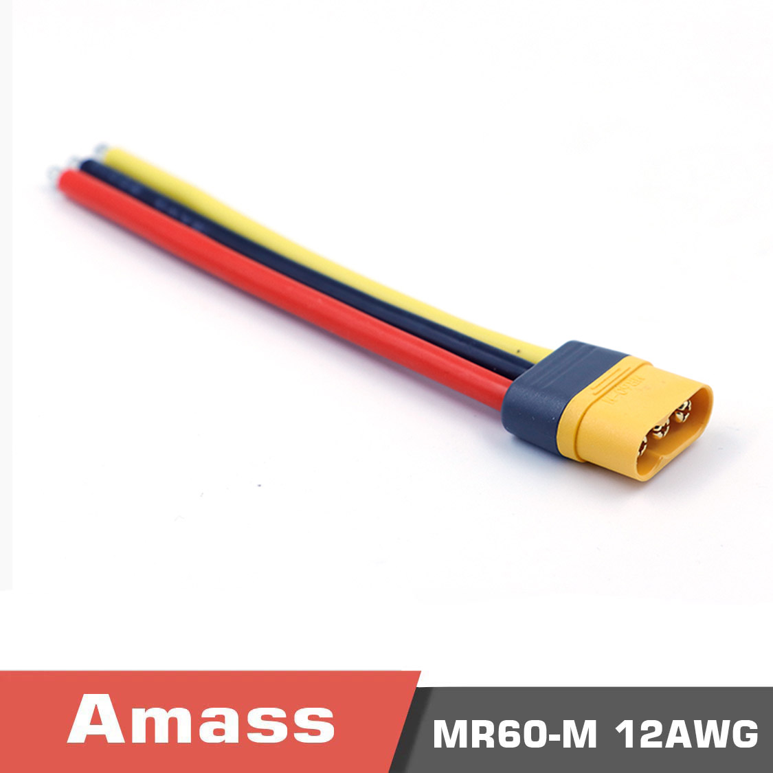 The Amass MR60 series products are a classic 180° outlet welding injection type 3PIN connector, designed for high-performance power connections. These connectors feature an optional rear cover and are arranged in a rectangular shape, making them a standard plug-in choice for power lithium-ion motors.