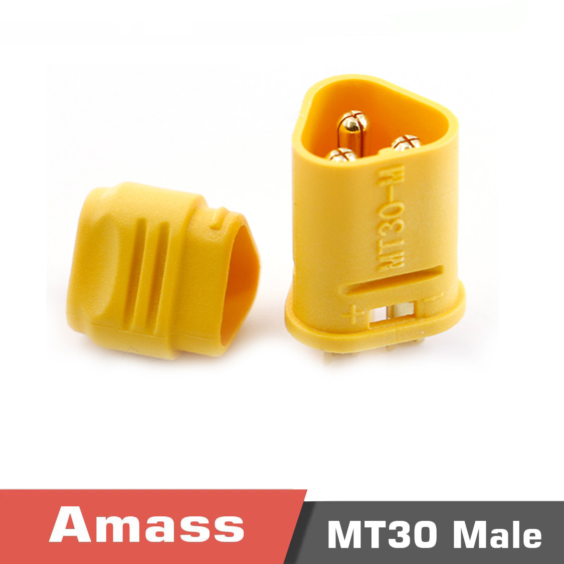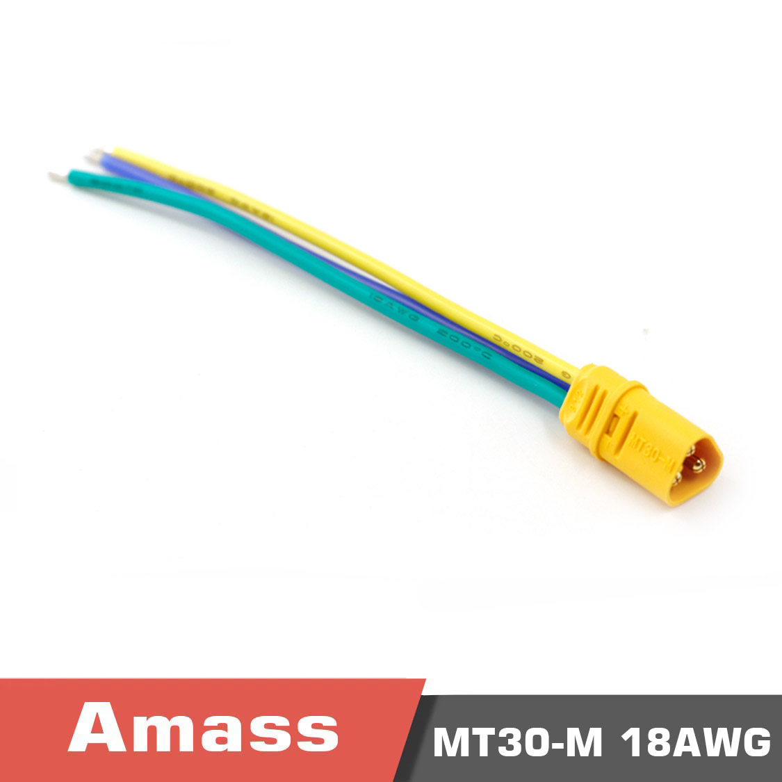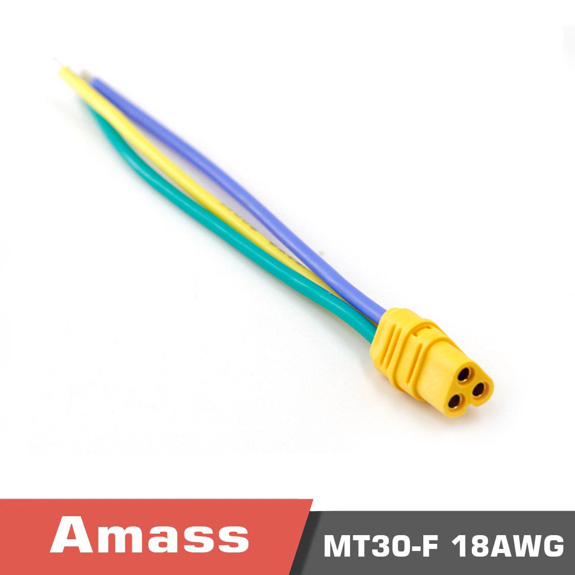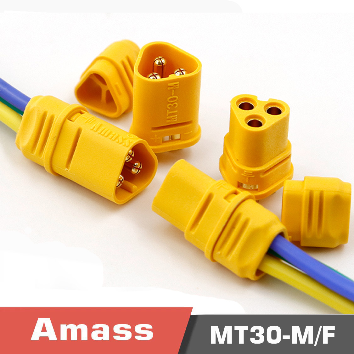 The Amass MT30 3-core series products are a classic 180° outlet welding injection type 3PIN connector, designed for high-performance power connections. These connectors feature an optional rear cover and are arranged in a rectangular shape, making them a standard plug-in choice for power lithium-ion motors.